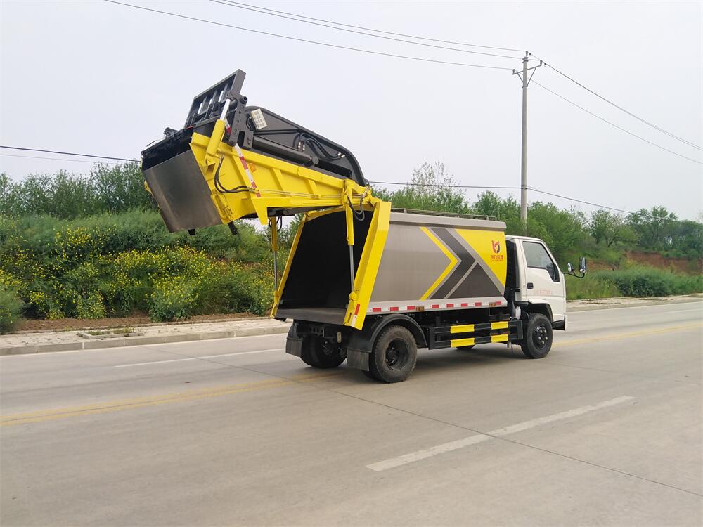 上裝配置:垃圾箱容積:6方,新款平面弧形廂體,廂體材料為武鋼優質碳鋼,PLC一鍵操作**,手電一體操作模式,兩側雙電控,帶駕駛室內操作,底板支撐加強,雙向壓縮,開放式易清潔污水箱。壓縮式垃圾車采用機電液一體化技術,借助機、電、液聯合自動**系統、電腦**、手動操作系統,通過填裝器和推鏟等專用裝置,實現垃圾倒入、壓碎或壓扁、強力裝填,把垃圾擠入車廂并壓實和推卸,污水全部進入污水廂,解決了垃圾運輸過程中的二次污染的問題。壓縮式垃圾車具有自動反復壓縮以及蠕動壓縮功能,壓縮比高、密封性好、裝載量大﹑操作方便、環保性好﹑整車利用功率高等優點。作業自動化,垃圾收集方式簡便、高效。后翻轉機構選裝:1、掛塑料桶式翻轉機構;2、掛鐵桶式翻轉機構;3、擺臂式翻轉機構; 4、簸箕斗式翻轉機構。