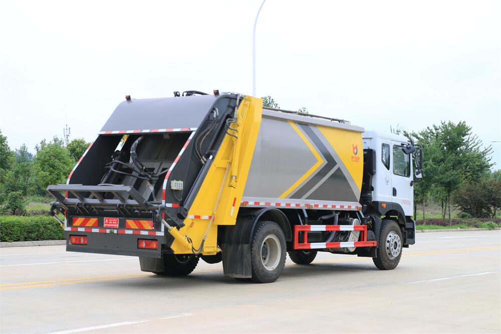 上裝配置:垃圾箱容積:13方,新款平面弧形廂體,廂體材料為武鋼優質碳鋼,PLC一鍵操作**,手電一體操作模式,兩側雙電控,帶駕駛室內操作,底板支撐加強,雙向壓縮,開放式易清潔污水箱。壓縮式垃圾車采用機電液一體化技術,借助機、電、液聯合自動**系統、電腦**、手動操作系統,通過填裝器和推鏟等專用裝置,實現垃圾倒入、壓碎或壓扁、強力裝填,把垃圾擠入車廂并壓實和推卸,污水全部進入污水廂,解決了垃圾運輸過程中的二次污染的問題。壓縮式垃圾車具有自動反復壓縮以及蠕動壓縮功能,壓縮比高、密封性好、裝載量大﹑操作方便、環保性好﹑整車利用功率高等優點。作業自動化,垃圾收集方式簡便、高效。后翻轉機構選裝:1、掛塑料桶式翻轉機構;2、掛鐵桶式翻轉機構;3、擺臂式翻轉機構; 4、簸箕斗式翻轉機構。