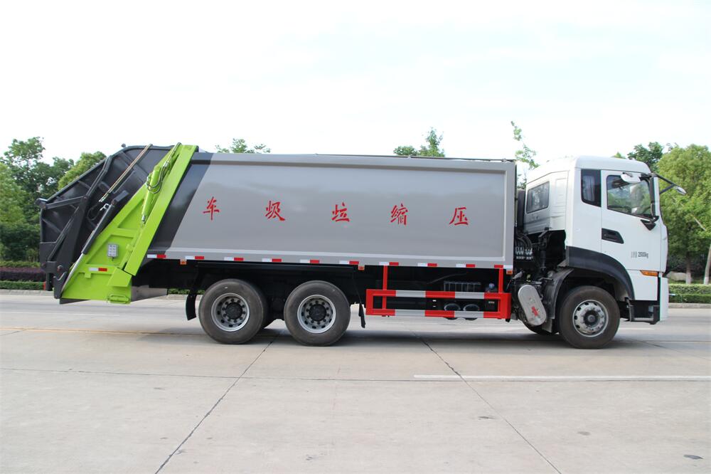 上裝配置:垃圾箱容積:18,20方選擇,新款平面弧形廂體,廂體材料為武鋼優質碳鋼,PLC一鍵操作**,手電一體操作模式,兩側雙電控,帶駕駛室內操作,底板支撐加強,雙向壓縮,開放式易清潔污水箱。壓縮式垃圾車采用機電液一體化技術,借助機、電、液聯合自動**系統、電腦**、手動操作系統,通過填裝器和推鏟等專用裝置,實現垃圾倒入、壓碎或壓扁、強力裝填,把垃圾擠入車廂并壓實和推卸,污水全部進入污水廂,解決了垃圾運輸過程中的二次污染的問題。壓縮式垃圾車具有自動反復壓縮以及蠕動壓縮功能,壓縮比高、密封性好、裝載量大﹑操作方便、環保性好﹑整車利用功率高等優點。作業自動化,垃圾收集方式簡便、高效。后翻轉機構選裝:1、掛塑料桶式翻轉機構;2、掛鐵桶式翻轉機構;3、擺臂式翻轉機構; 4、簸箕斗式翻轉機構。