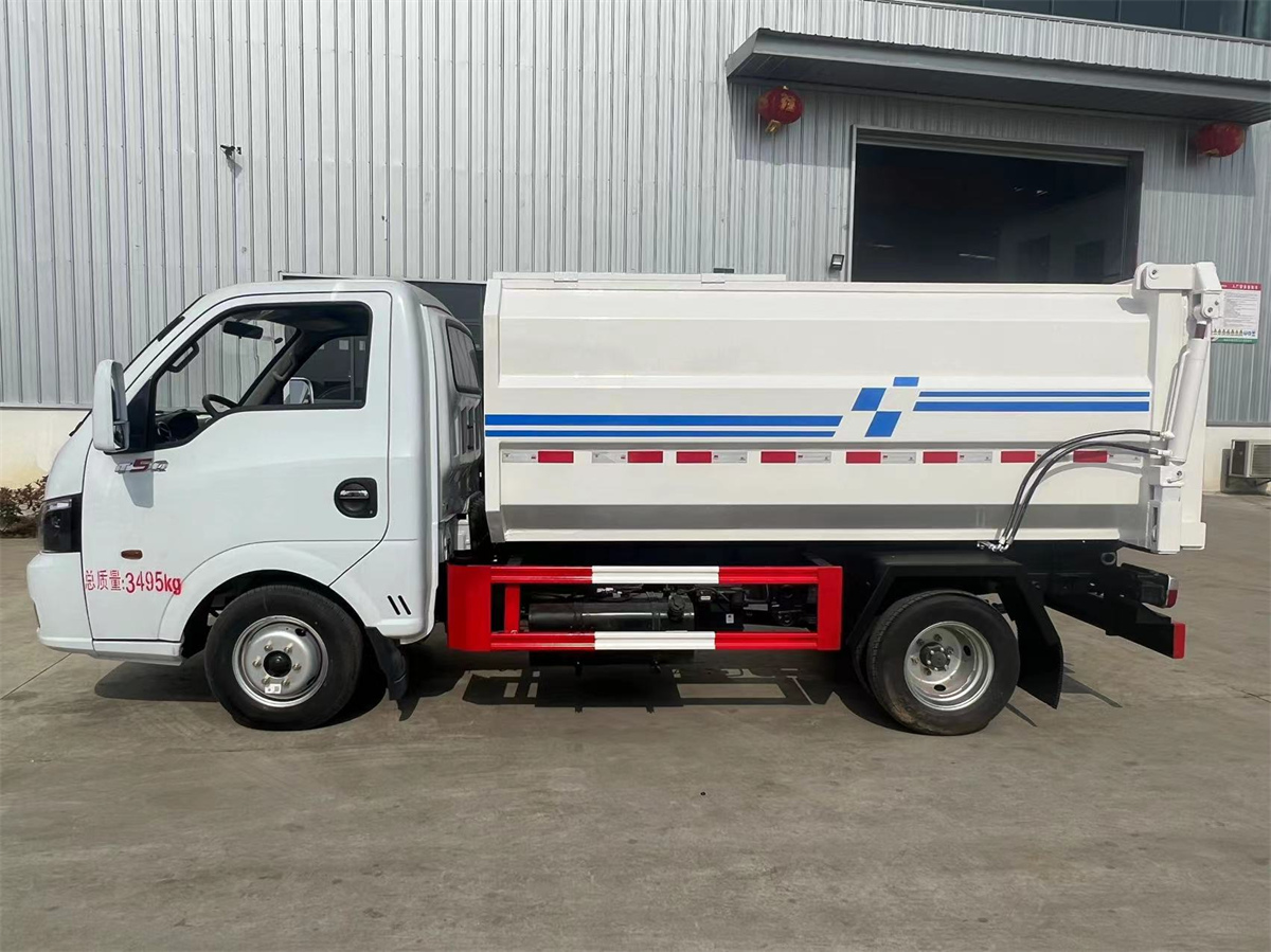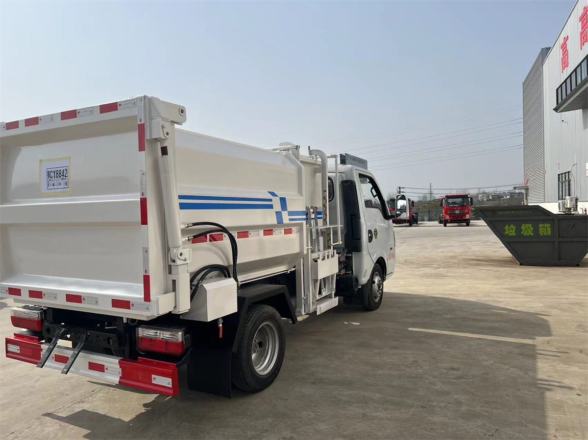 4方掛桶垃圾車-東風途逸藍牌側裝壓縮掛桶自裝式垃圾車