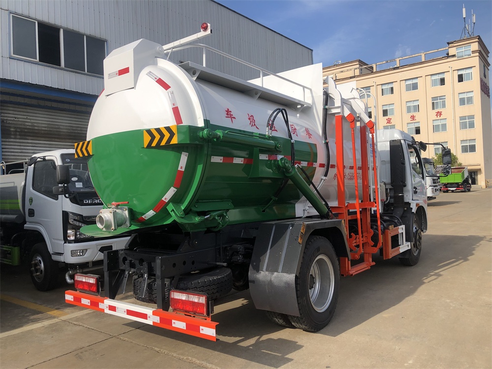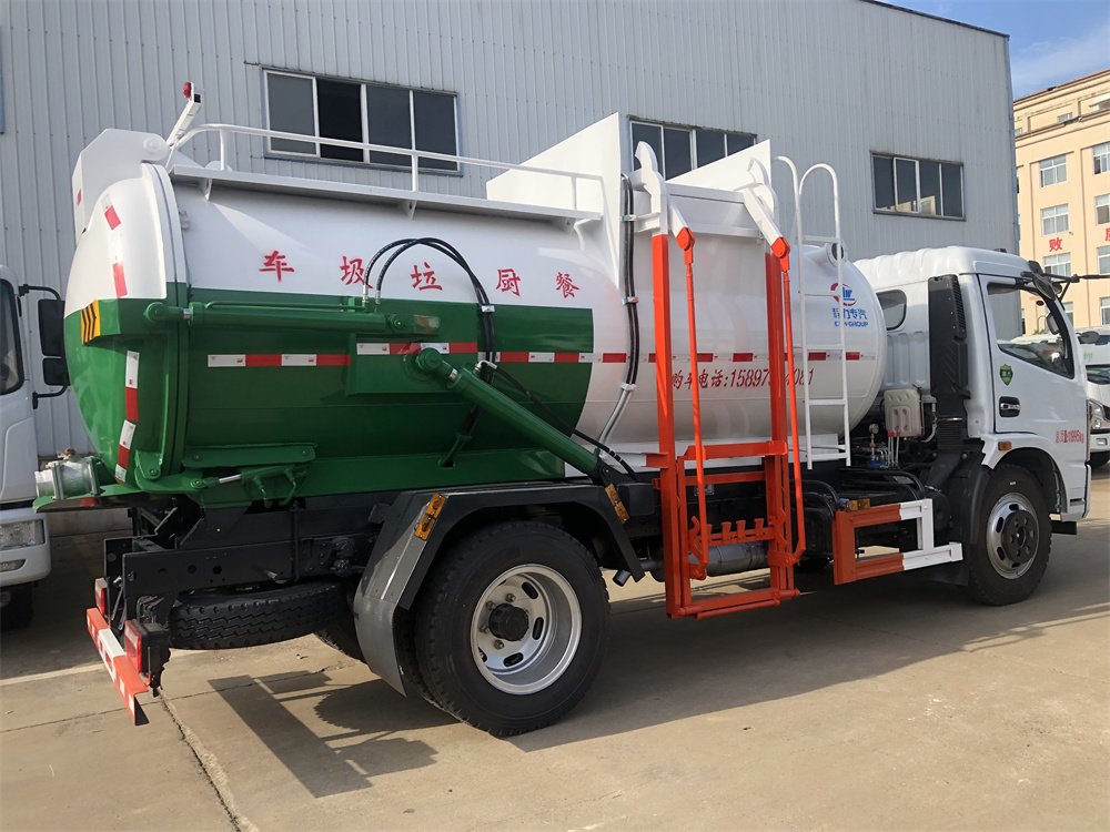 上裝配置:罐體容積8m3,配備120L/240L掛桶提升翻轉機構,液壓系統,后蓋液壓鎖緊開啟,罐體可以舉升自卸,尾部帶自流閥;用于運輸液態垃圾,其特點操作簡單,密封性好,無泄漏,無異味;可選裝固液分離功能,推板擠壓功能,常用于餐館的垃圾轉運處理。