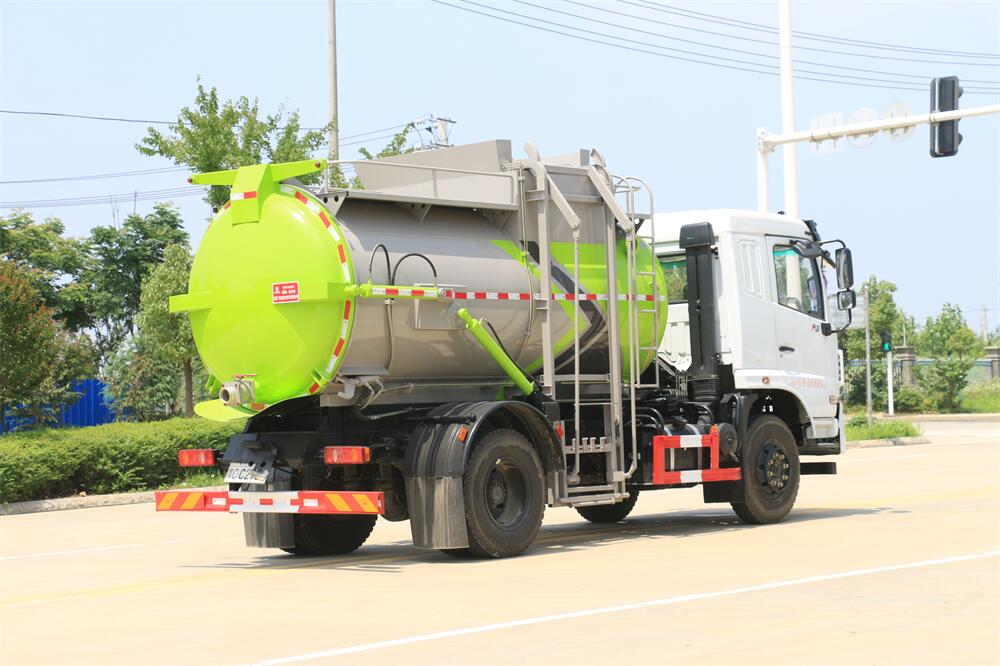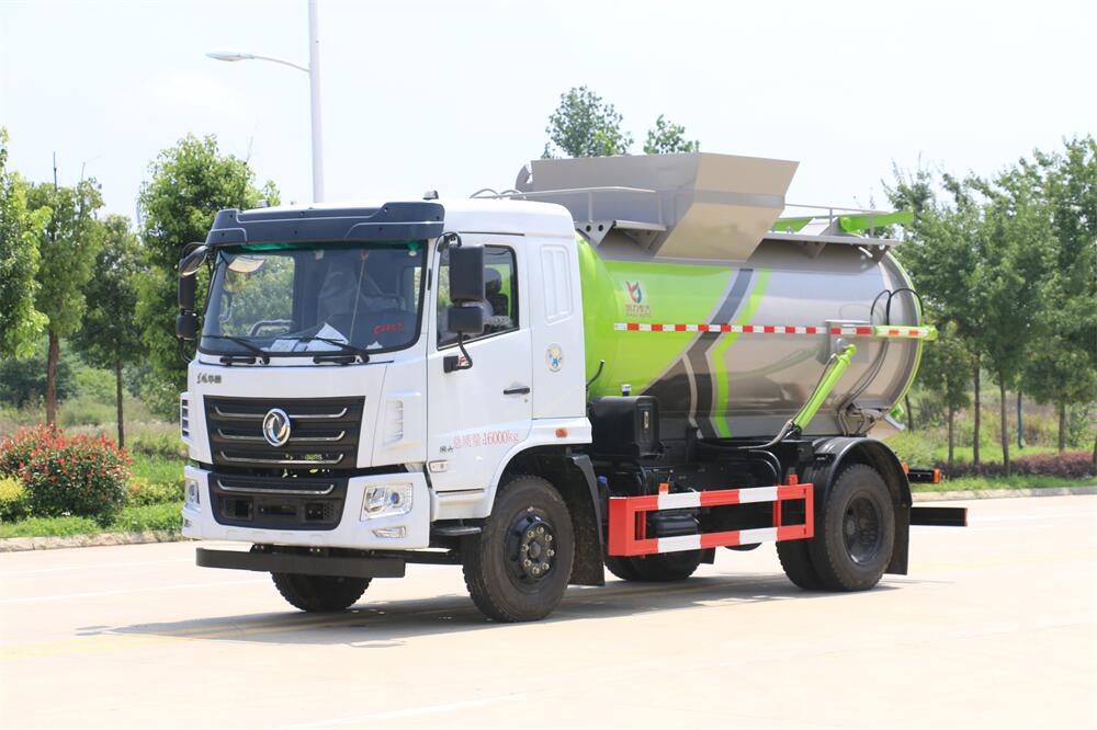 上裝配置:罐體容積10m3,配備120L/240L掛桶提升翻轉(zhuǎn)機構(gòu),液壓系統(tǒng),后蓋液壓鎖緊開啟,罐體可以舉升自卸,尾部帶自流閥;用于運輸液態(tài)垃圾,其特點操作簡單,密封性好,無泄漏,無異味;可選裝固液分離功能,推板擠壓功能,常用于餐館的垃圾轉(zhuǎn)運處理。