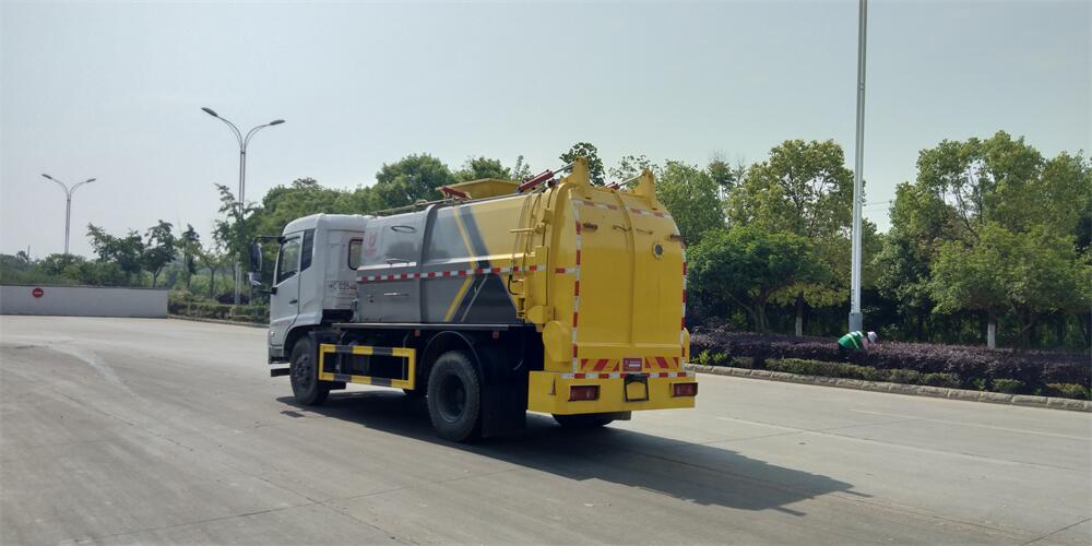 上裝配置:罐體容積12m3,配備120L/240L掛桶提升翻轉機構,液壓系統(tǒng),后蓋液壓鎖緊開啟,罐體可以舉升自卸,尾部帶自流閥;用于運輸液態(tài)垃圾,其特點操作簡單,密封性好,無泄漏,無異味;可選裝固液分離功能,推板擠壓功能,常用于餐館的垃圾轉運處理。