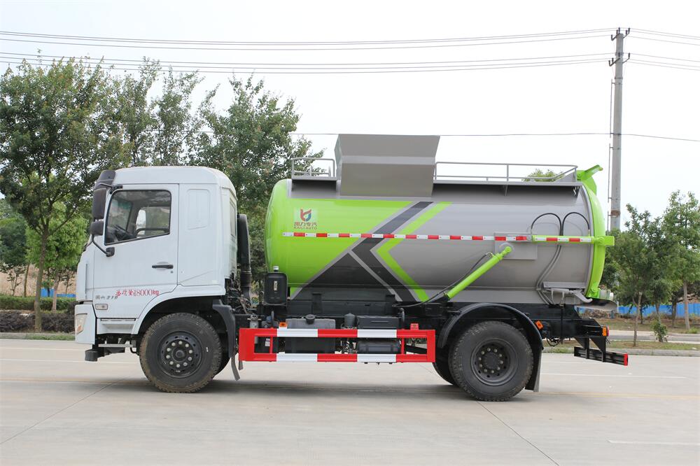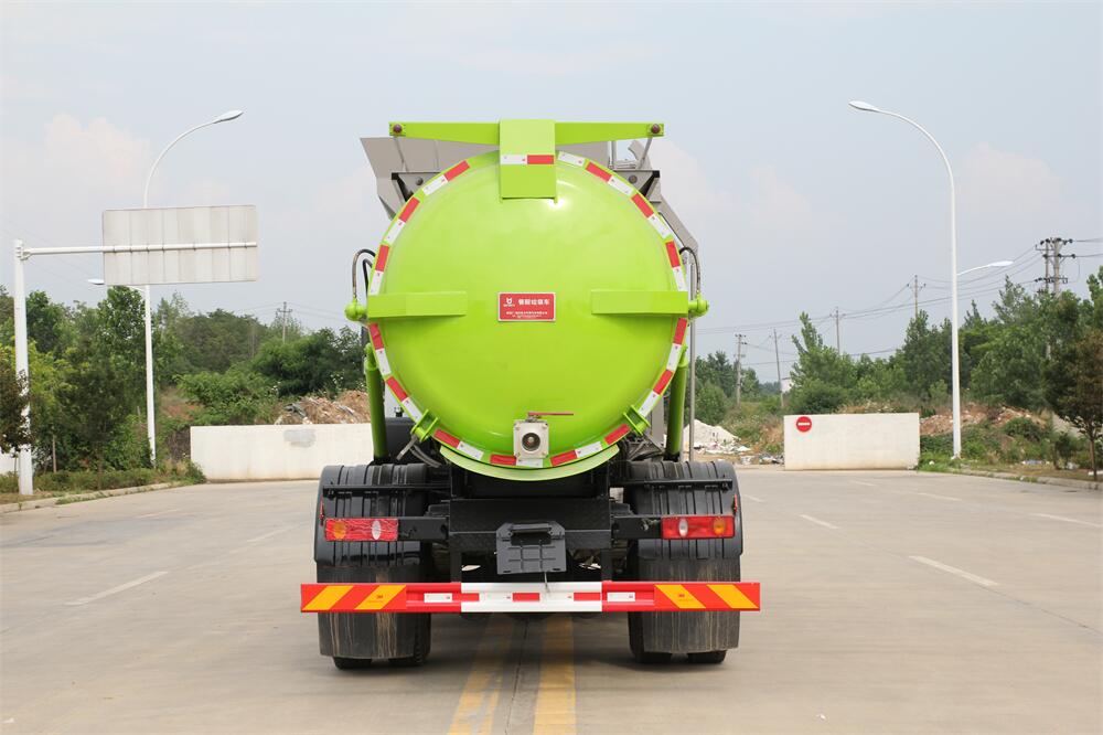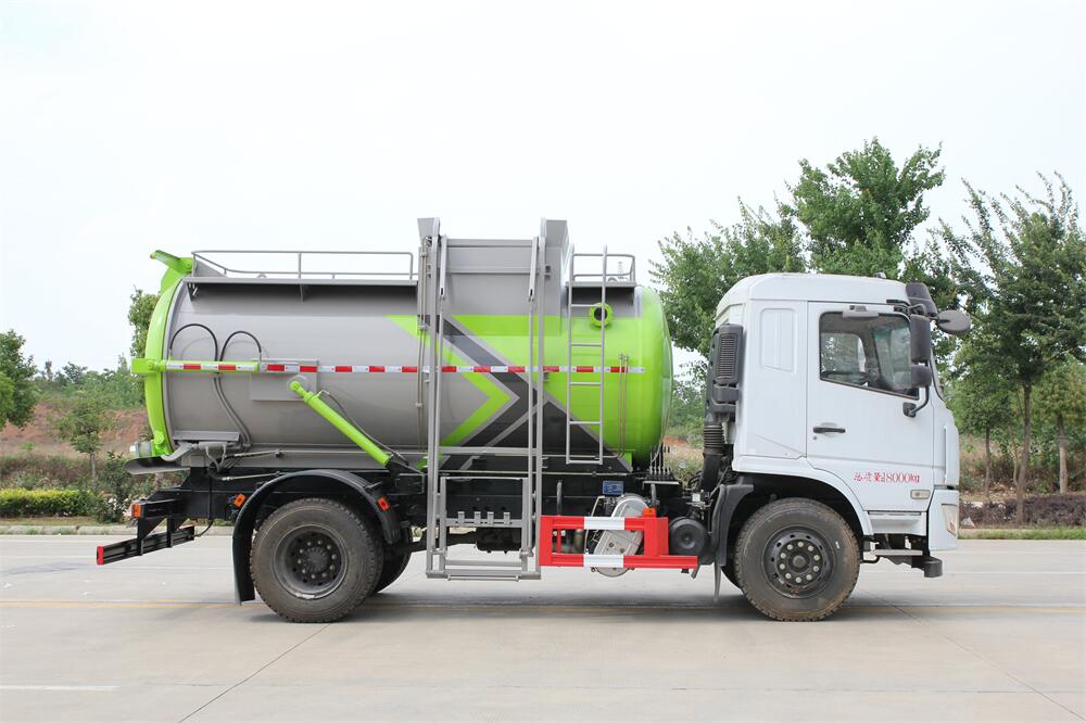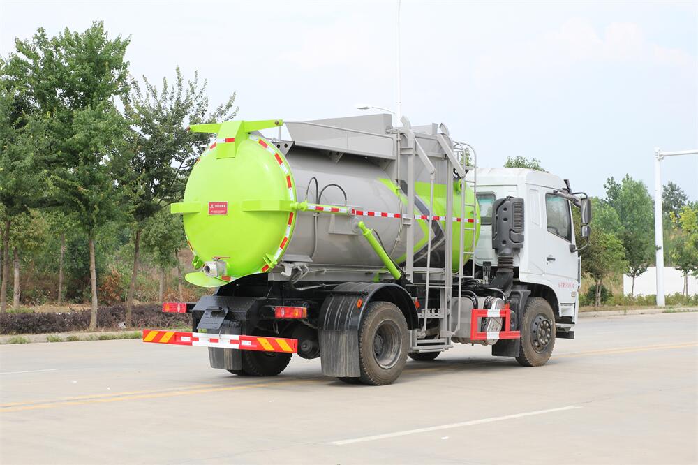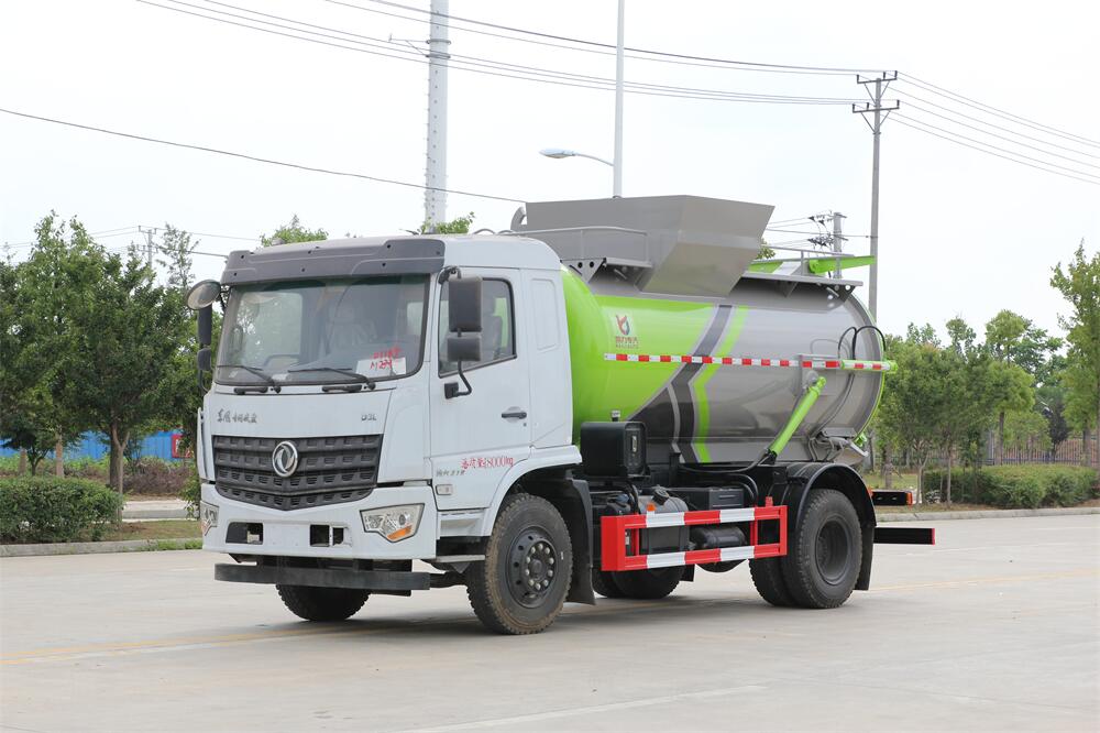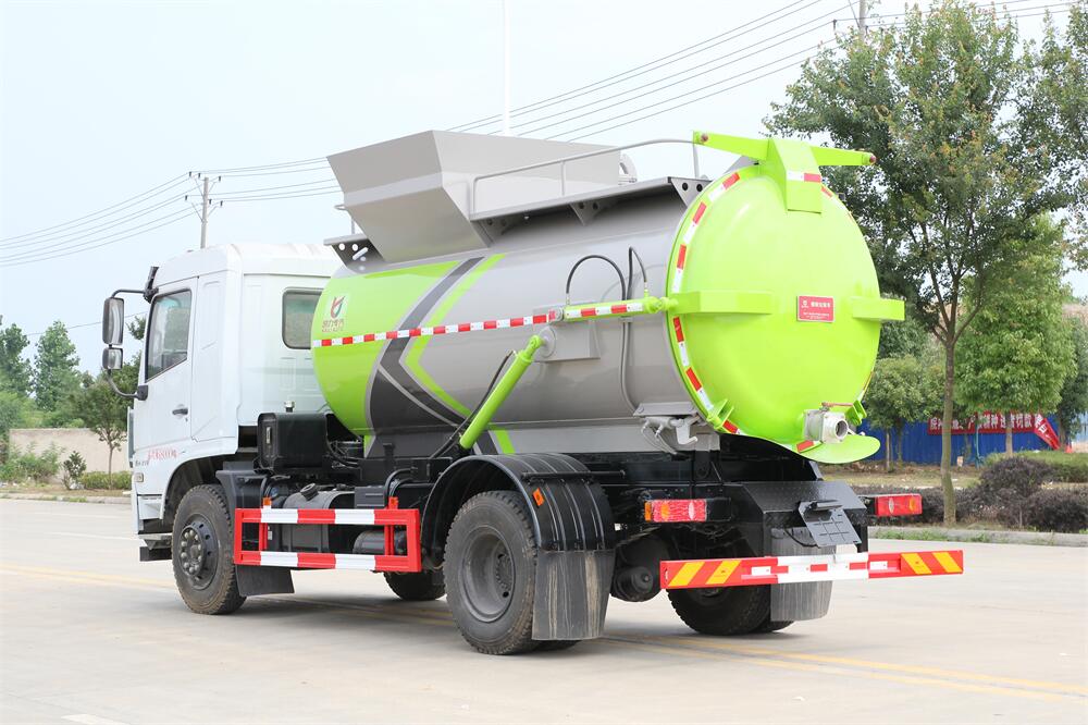 上裝配置:罐體容積10m3,配備120L/240L掛桶提升翻轉(zhuǎn)機(jī)構(gòu),液壓系統(tǒng),后蓋液壓鎖緊開啟,罐體可以舉升自卸,尾部帶自流閥;用于運(yùn)輸液態(tài)垃圾,其特點(diǎn)操作簡(jiǎn)單,密封性好,無泄漏,無異味;可選裝固液分離功能,推板擠壓功能,常用于餐館的垃圾轉(zhuǎn)運(yùn)處理。
