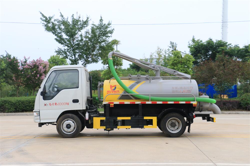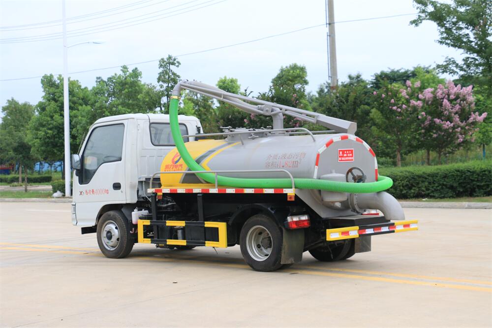 上裝配置:5T真空油泵(SK-9水循環(huán)泵), 油水分離器 ,防溢閥,視糞管,洗水箱,吊桿座(可270度旋轉(zhuǎn)),尾部一個220排糞口帶駕駛室操作,一根6米吸糞管帶陰陽端快接頭。