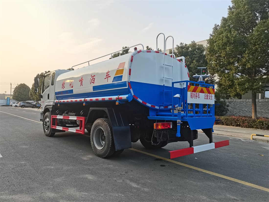 灑水車性能特點:前沖(噴)后灑,帶側噴,罐體后帶工作平臺,平臺上安裝綠化灑水炮,灑水炮可360旋轉,可連續調成直沖狀、大雨、小雨、毛毛雨,帶安全護欄,配備全國質量評比**名的杭州威龍大功率專用  灑水泵,泵可自吸自排,安裝過濾網,帶消防接口,可通過消防栓進水,帶自流閥,隨車選裝20米綠化卷盤,可噴灑農藥。