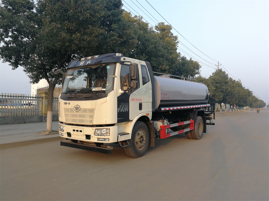 灑水車前裝有鴨形噴嘴或圓頭沖嘴,后面裝有圓柱開灑水噴嘴或蓮蓬頭噴嘴,后部有一工作平臺,裝配有水炮。后部還可裝8個噴嘴(選裝)。