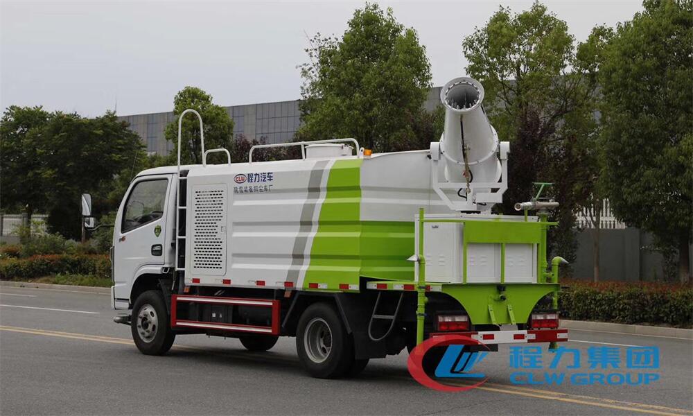 上裝配置:罐體容積為 5-7立方,選配風送式霧炮機組射程30米、40米、50米、60米、80米、100米、120米霧炮,罐體鋼板為4mm碳鋼Q235材質,罐內隔板具有防波作用,以減輕汽車行駛時罐體液體沖擊,罐體及整車外形尺寸按照公告。帶大功率專用灑水泵,泵可自吸自排,整車前沖、后灑、側噴、帶65消防接口,后平臺配CLW-50、CLW-60、CLW-80、CLW-100、CLW-120型風送式霧炮機組;罐體前封頭配大功率柴油發電機組;前封頭帶水位計,后平臺主管路帶1寸澆花接口,后爬梯。帶兩根輸水管及陰陽端。罐體顏色:銀/灰/綠,罐體兩側噴“多功能抑塵車”字樣,貼反光標示。