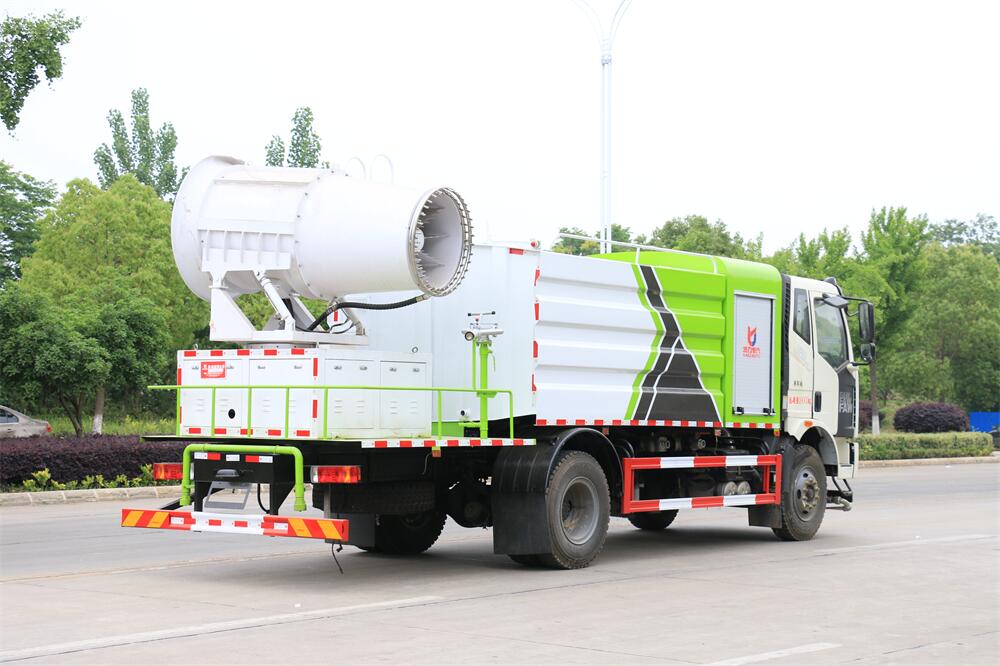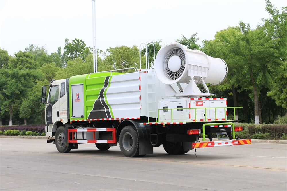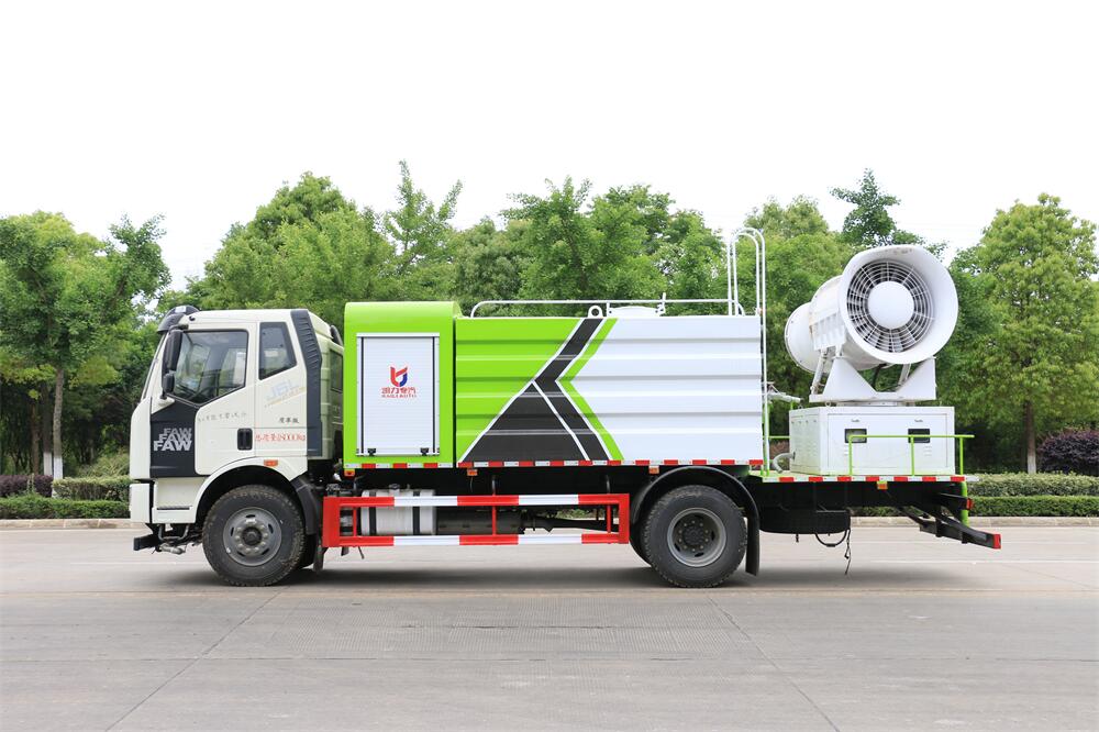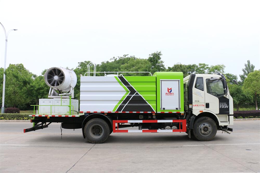 上裝配置:罐體容積為 12立方,選配風(fēng)送式霧炮機(jī)組射程30米、40米、50米、60米、80米、100米、120米霧炮,罐體鋼板為4mm碳鋼Q235材質(zhì),罐內(nèi)隔板具有防波作用,以減輕汽車行駛時(shí)罐體液體沖擊,罐體及整車外形尺寸按照公告。帶大功率專用灑水泵,泵可自吸自排,整車前沖、后灑、側(cè)噴、帶65消防接口,后平臺(tái)配CLW-50、CLW-60、CLW-80、CLW-100、CLW-120型風(fēng)送式霧炮機(jī)組;罐體前封頭配大功率柴油發(fā)電機(jī)組;前封頭帶水位計(jì),后平臺(tái)主管路帶1寸澆花接口,后爬梯。帶兩根輸水管及陰陽(yáng)端。罐體顏色:銀/灰/綠,罐體兩側(cè)噴“多功能抑塵車”字樣,貼反光標(biāo)示。