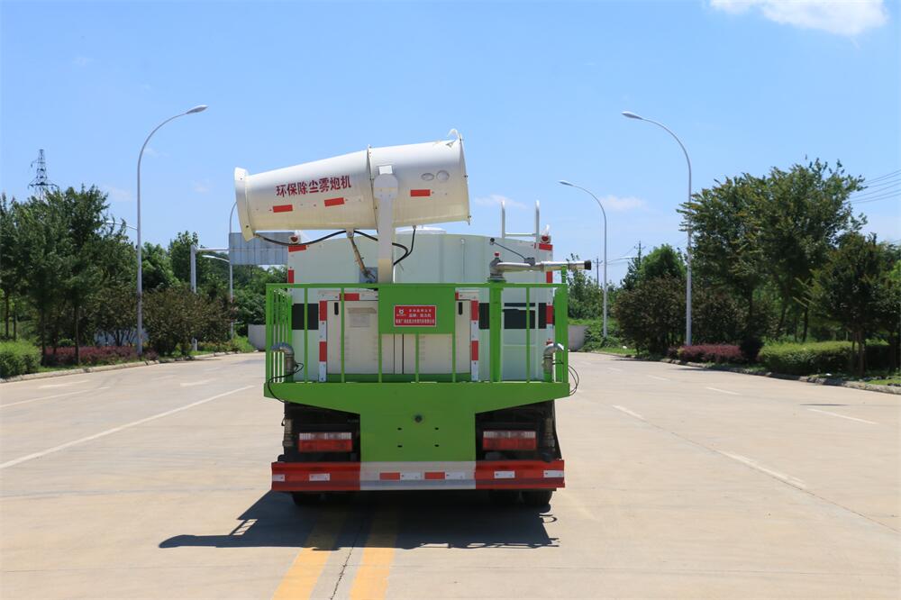 上裝配置:罐體容積為 16立方,選配風(fēng)送式霧炮機(jī)組射程30米、40米、50米、60米、80米、100米、120米霧炮,罐體鋼板為4mm碳鋼Q235材質(zhì),罐內(nèi)隔板具有防波作用,以減輕汽車行駛時罐體液體沖擊,罐體及整車外形尺寸按照公告。帶大功率專用灑水泵,泵可自吸自排,整車前沖、后灑、側(cè)噴、帶65消防接口,后平臺配CLW-50、CLW-60、CLW-80、CLW-100、CLW-120型風(fēng)送式霧炮機(jī)組;罐體前封頭配大功率柴油發(fā)電機(jī)組;前封頭帶水位計,后平臺主管路帶1寸澆花接口,后爬梯。帶兩根輸水管及陰陽端。罐體顏色:銀/灰/綠,罐體兩側(cè)噴“多功能抑塵車”字樣,貼反光標(biāo)示。