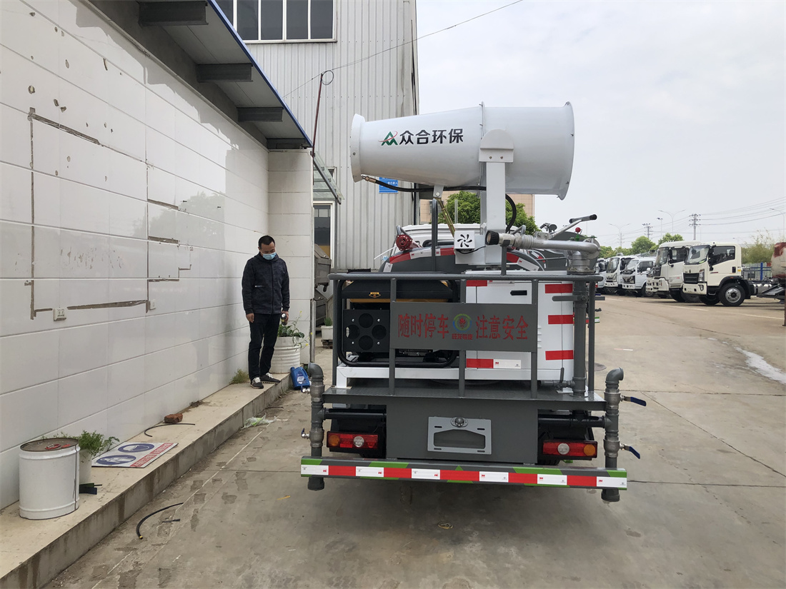 主要由發動機帶動變速箱,變速箱上安裝的取力器帶動灑水泵,灑水泵產生動力,將罐體內部的液體通過管網噴灑出去。工作范圍:自吸高度:≥7m,灑水寬度:≥14m,**大射程:≥28m;可調節成柱狀,射程≥28m;也可調節成霧狀,射程≥5m。
