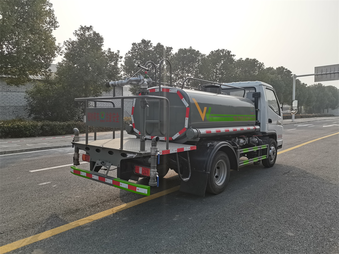 上裝配置:罐體容積 2立方,風送式霧炮機組30米,40米選擇,罐體采用國標Q235碳鋼材質,罐體厚度4MM,前后封頭5MM加厚型,罐體內雙層隔板具有防波蕩作用,以減輕汽車行駛時罐內液體沖擊;灑水車整車及外形尺寸嚴格按照**機動車公告制作而成;裝配大功率專用灑水泵,前沖、后灑、側噴、后平臺帶綠化灑水炮,灑水炮可全方位旋轉,可連續調成直沖狀、大雨、小雨、毛毛雨;配消防接口,自流閥,濾網,帶自吸自排功能。前封頭帶水位計,后平臺主管路帶1寸澆花接口,后爬梯,帶1個消防接頭,帶1個自流閥,1個過濾裝置,其余標配。