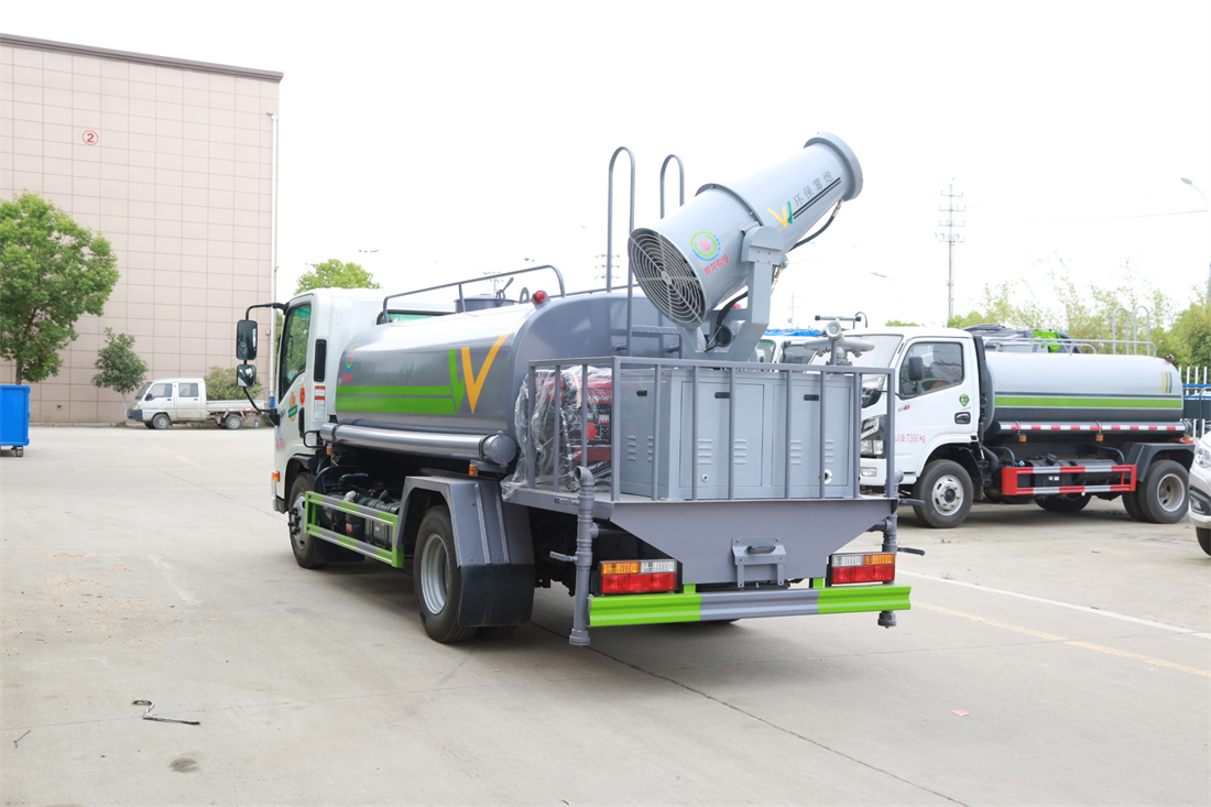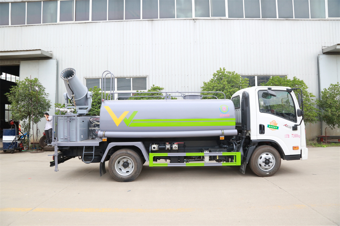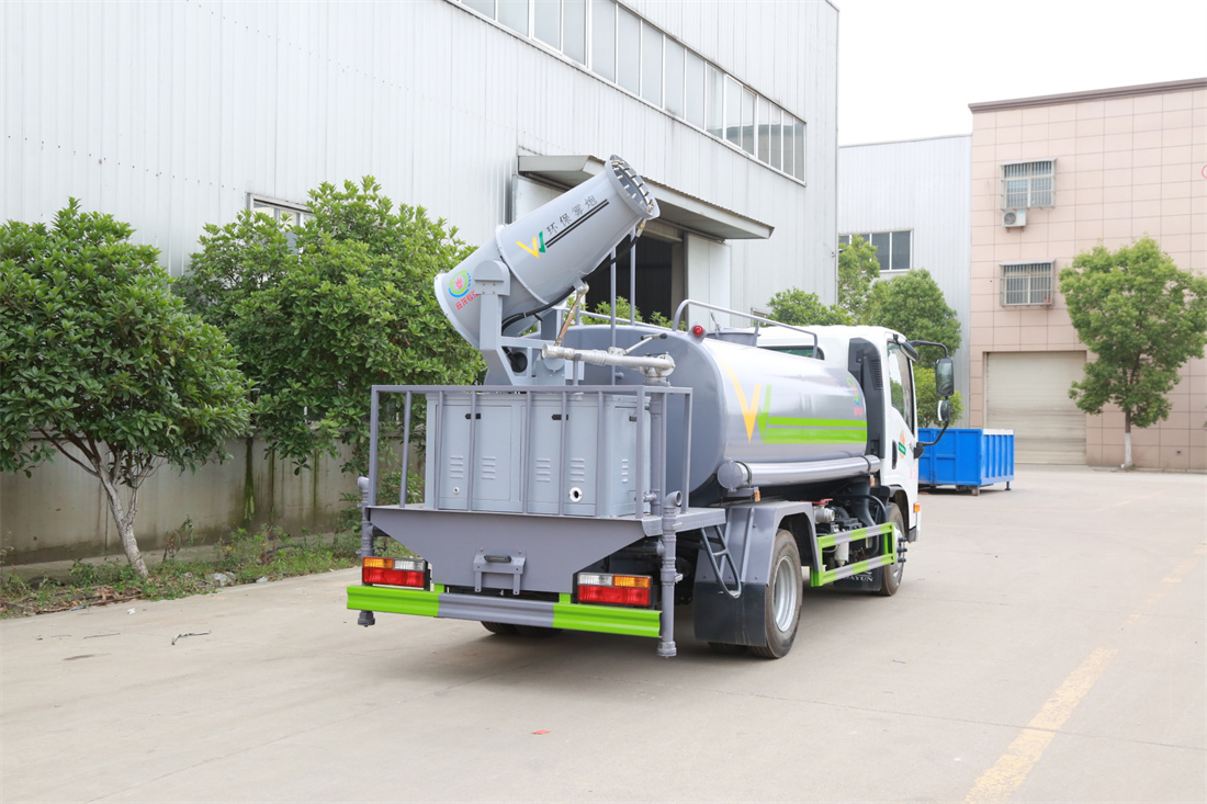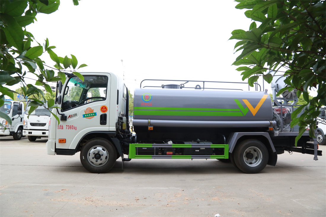上裝配置:罐體容積 5立方,風送式霧炮機組30米,40米選擇,罐體采用國標Q235碳鋼材質,罐體厚度4MM,前后封頭5MM加厚型,罐體內雙層隔板具有防波蕩作用,以減輕汽車行駛時罐內液體沖擊;灑水車整車及外形尺寸嚴格按照**機動車公告制作而成;裝配大功率專用灑水泵,前沖、后灑、側噴、后平臺帶綠化灑水炮,灑水炮可全方位旋轉,可連續調成直沖狀、大雨、小雨、毛毛雨;配消防接口,自流閥,濾網,帶自吸自排功能。前封頭帶水位計,后平臺主管路帶1寸澆花接口,后爬梯,帶1個消防接頭,帶1個自流閥,1個過濾裝置,其余標配。