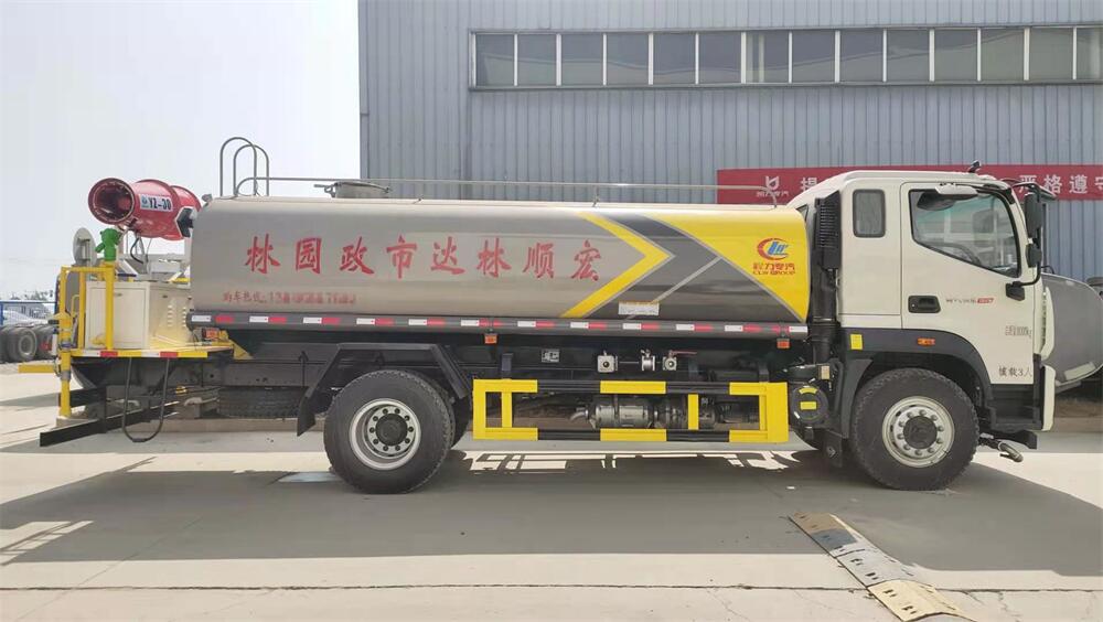 上裝配置:罐體容積 12立方,風送式霧炮機組30米,40米選擇,罐體采用國標Q235碳鋼材質,罐體厚度4MM,前后封頭5MM加厚型,罐體內雙層隔板具有防波蕩作用,以減輕汽車行駛時罐內液體沖擊;灑水車整車及外形尺寸嚴格按照**機動車公告制作而成;裝配大功率專用灑水泵,前沖、后灑、側噴、后平臺帶綠化灑水炮,灑水炮可全方位旋轉,可連續(xù)調成直沖狀、大雨、小雨、毛毛雨;配消防接口,自流閥,濾網(wǎng),帶自吸自排功能。前封頭帶水位計,后平臺主管路帶1寸澆花接口,后爬梯,帶1個消防接頭,帶1個自流閥,1個過濾裝置,其余標配。