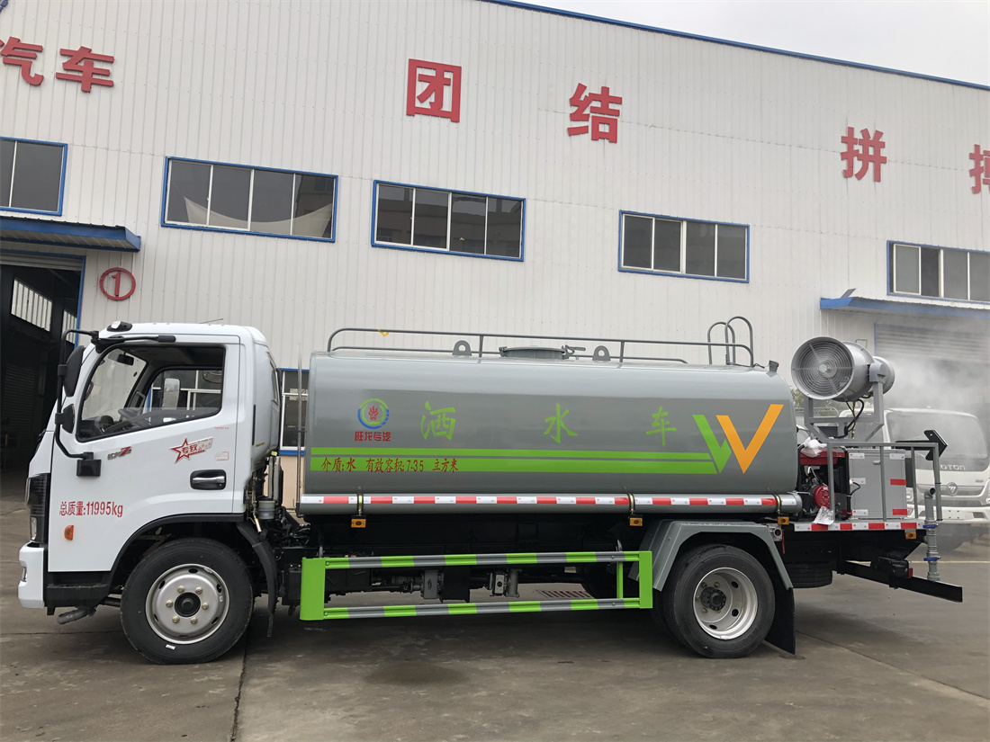 上裝配置:罐體容積 9立方,風送式霧炮機組30米,40米選擇,罐體采用國標Q235碳鋼材質,罐體厚度4MM,前后封頭5MM加厚型,罐體內雙層隔板具有防波蕩作用,以減輕汽車行駛時罐內液體沖擊;灑水車整車及外形尺寸嚴格按照**機動車公告制作而成;裝配大功率專用灑水泵,前沖、后灑、側噴、后平臺帶綠化灑水炮,灑水炮可全方位旋轉,可連續調成直沖狀、大雨、小雨、毛毛雨;配消防接口,自流閥,濾網,帶自吸自排功能。前封頭帶水位計,后平臺主管路帶1寸澆花接口,后爬梯,帶1個消防接頭,帶1個自流閥,1個過濾裝置,其余標配。