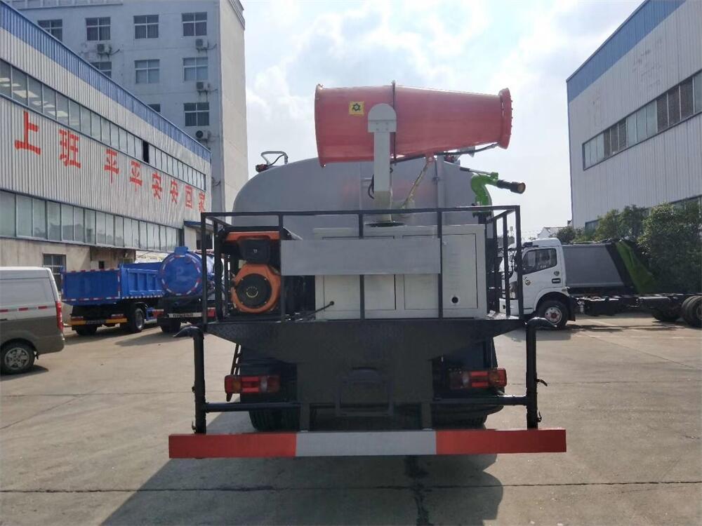 主要由發動機帶動變速箱,變速箱上安裝的取力器帶動灑水泵,灑水泵產生動力,將罐體內部的液體通過管網噴灑出去。工作范圍:自吸高度:≥7m,灑水寬度:≥14m,**大射程:≥28m;可調節成柱狀,射程≥28m;也可調節成霧狀,射程≥5m。