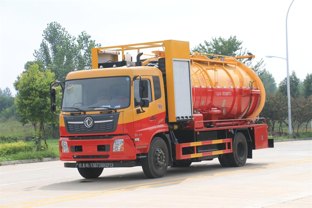15方15方清洗吸污車-東風天錦15方10+5清洗吸污兩用車-帶副發動機圓罐紅黃色