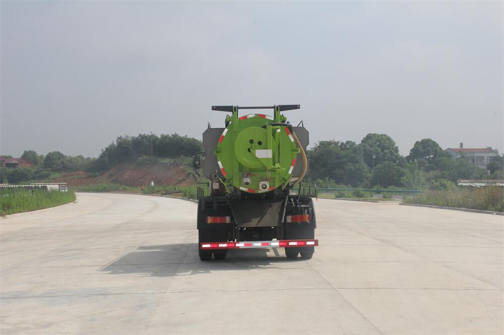 上裝配置:上裝配置:水罐4 立方,污罐 8立方;清洗 部份采用天津通潔,壓力 24Mpa,流量 215L/min,配80米直徑22高壓管帶液壓卷盤; 吸污部份采用山東 SK-15 水循環泵(億豐 10T 雙聯想真空泵),吸污罐帶舉升,后蓋液壓開 啟,帶一個 600mm 快開,罐體后尾部一個 DN150 排污口球閥,一個 DN100 進污口球閥,一個視 污窗,一根 10m 吸污管,一套陰陽端,壓力 表,防溢閥,箭頭燈,淋管裝置,高壓泵帶氣 吹水。配一個 4.5 公斤水雷噴頭,另帶一個 80 公分手持洗車噴頭。