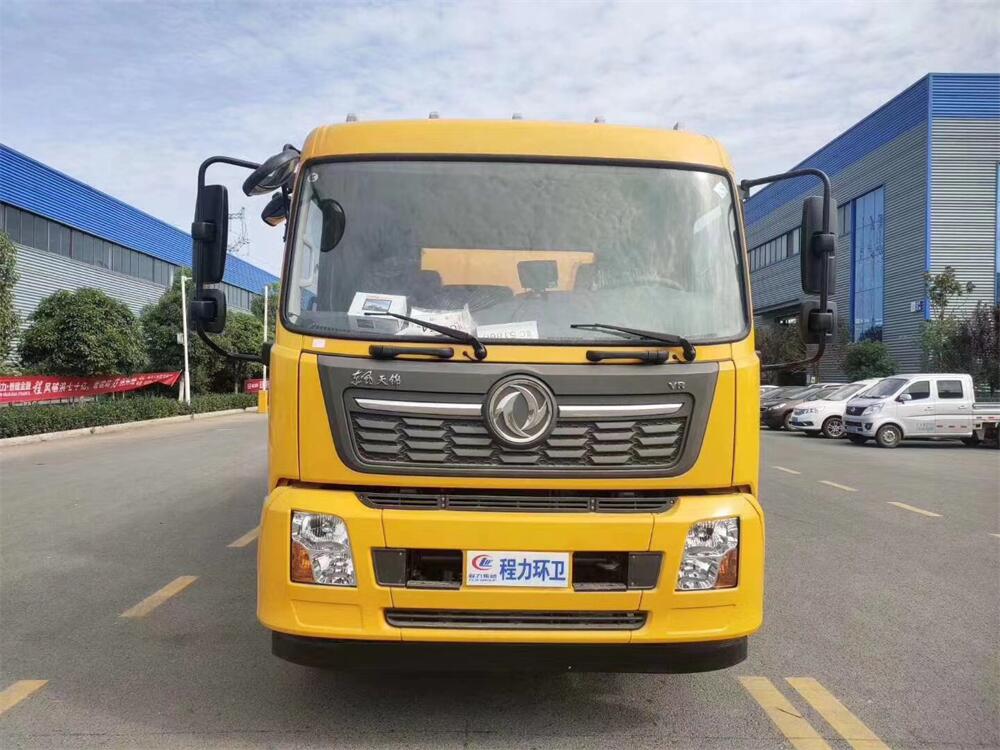 上裝配置:清水罐約 5 立方,污水罐約 10 立 方;罐體 8mm 厚,封頭 8mm 厚,水罐、污罐可 互通,用 100 球閥**開關;清洗部份采用天 津通潔高壓泵,壓力 19Mpa,流量 215L/min, 配 80 米直徑 22 高壓管帶液壓卷盤;吸污部份 采用濰柴375馬力副發動機帶山東SK-30水循 環泵(副發自帶),吸污罐帶舉升,后封頭焊 死(可選擇后封頭全開),尾部加裝一個 600mm 快開,罐體后尾部一個 DN150 排污口球閥,一 個 DN100 吸污球閥帶出口盤,一個視污窗,一 根 10m 吸污管,一套陰陽端,壓力表,防溢 閥,箭頭燈,工具箱,淋管裝置,高壓泵帶氣 吹水。配一個 4.5 公斤水雷噴頭,另帶一個 80 公分手持洗車噴頭。