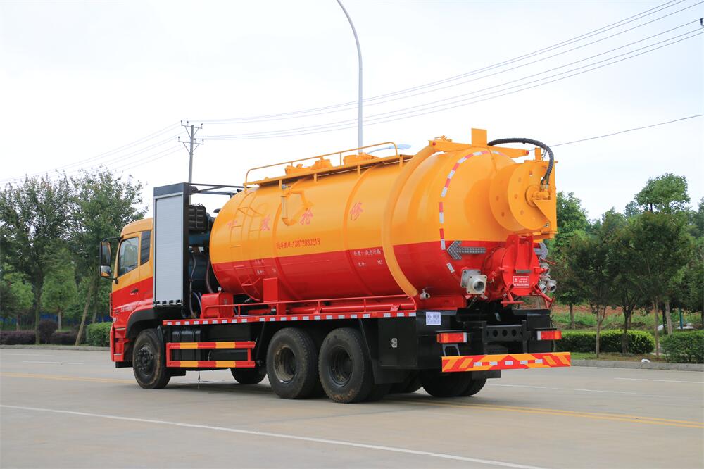 22方清洗吸污車-東風天龍22方清洗吸污兩用車-帶副發動機 圓罐