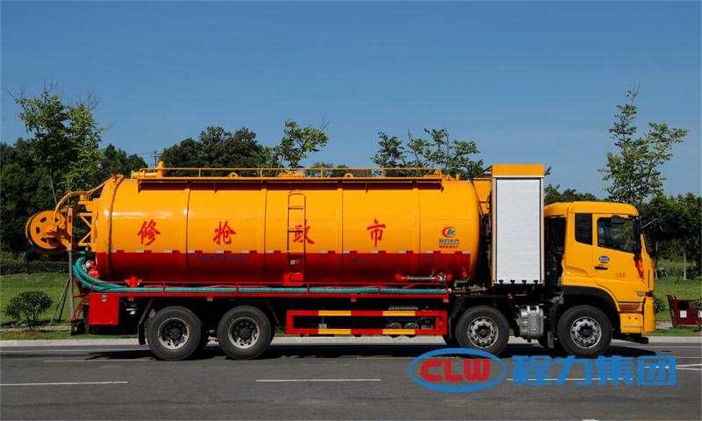 上裝配置:罐體容積為 30 立方(水污可自由 分配),罐體 8mm 厚,封頭 8mm 厚,水罐、污 罐可互通,用 100 球閥**開關;清洗部份采 用雙耀高壓泵,壓力 20Mpa,流量 330L/min, 配 80 米直徑 25 高壓管帶液壓卷盤;吸污部份 采用濰柴420馬力副發動機帶山東SK-42水循 環泵(副發自帶),吸污罐帶舉升,尾部加裝 一個 600mm 快開,罐體后尾部一個 DN150 不銹 鋼排污口,一個 DN150 不銹鋼偷排,兩個 DN100 吸污球閥帶出口盤,一個視污窗,兩根 10m 吸 污管,一套陰陽端,壓力表,防溢閥,箭頭燈, 工具箱,淋管裝置,高壓泵帶氣吹水。配一個 9 公斤水雷噴頭,另帶一個 80 公分手持洗車 噴頭。