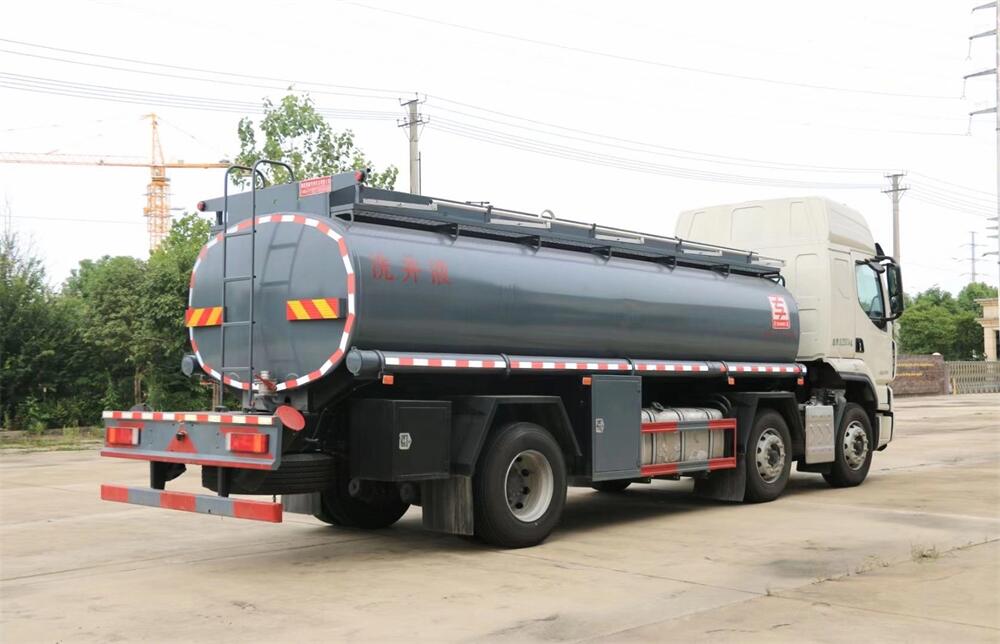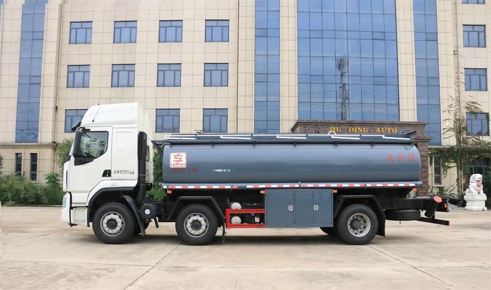 上裝配置:容積:17.6立方米,介質:清洗劑、減水劑、凈水劑、添加劑、壓裂液、水、潤滑油……罐體采用304#不銹鋼4-5mm厚制作,單倉帶60-90灑水泵,一個不銹鋼海底閥,一個罐口,兩個清洗口,兩個泵出口(一個在正常位置,一個在罐體尾部并出口向上,其余標配。