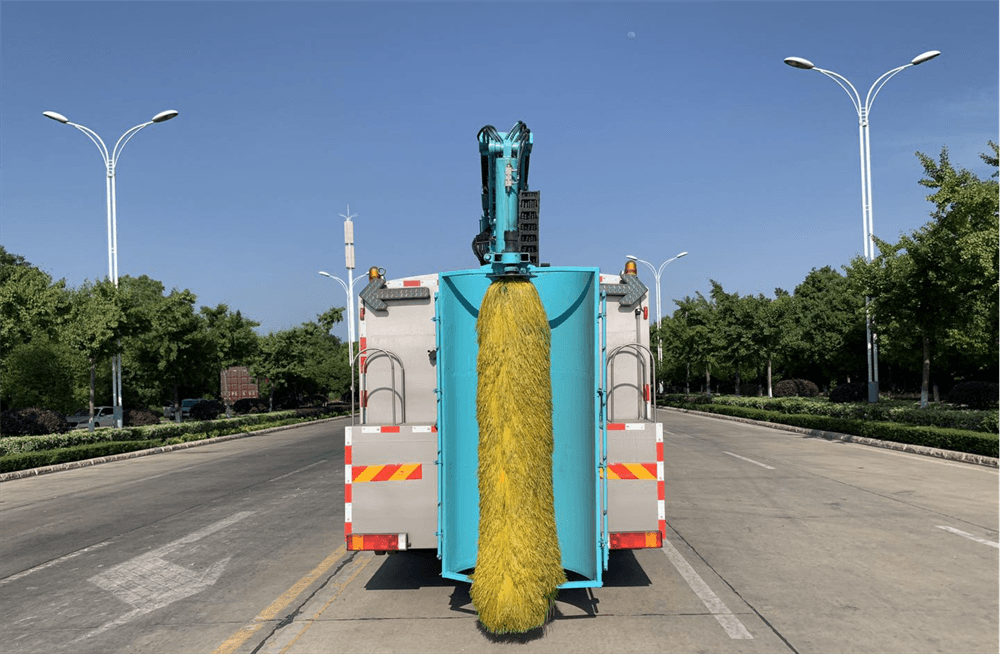 HCQ5250TXQDF6隔音屏清洗車的基本工作原理是利用安裝在回轉(zhuǎn)支承的折疊筆架上的直徑為1000MM,長(zhǎng)2000MM的高速旋轉(zhuǎn)(385R/MIN)的圓柱滾刷一邊噴射洗滌劑與清洗,一邊滾刷,能連續(xù)清洗2M寬的墻面。由于洗刷都安裝在回轉(zhuǎn)支承上可以左右旋轉(zhuǎn),所以墻面清洗車可在不換向的情況下,洗刷兩邊的墻面。此外洗刷還可以清洗路標(biāo)、廣告牌、高架橋等。本隔音屏清洗車的液壓、電氣元件采用國(guó)際**產(chǎn)品,性能優(yōu)良、工作可靠。