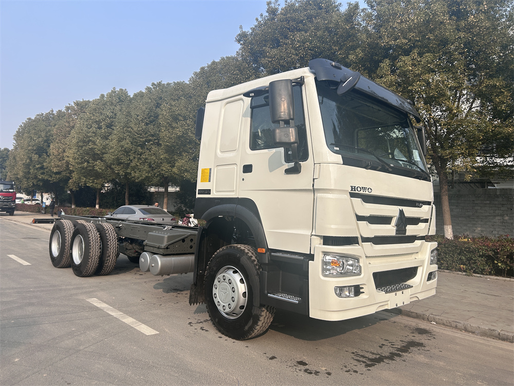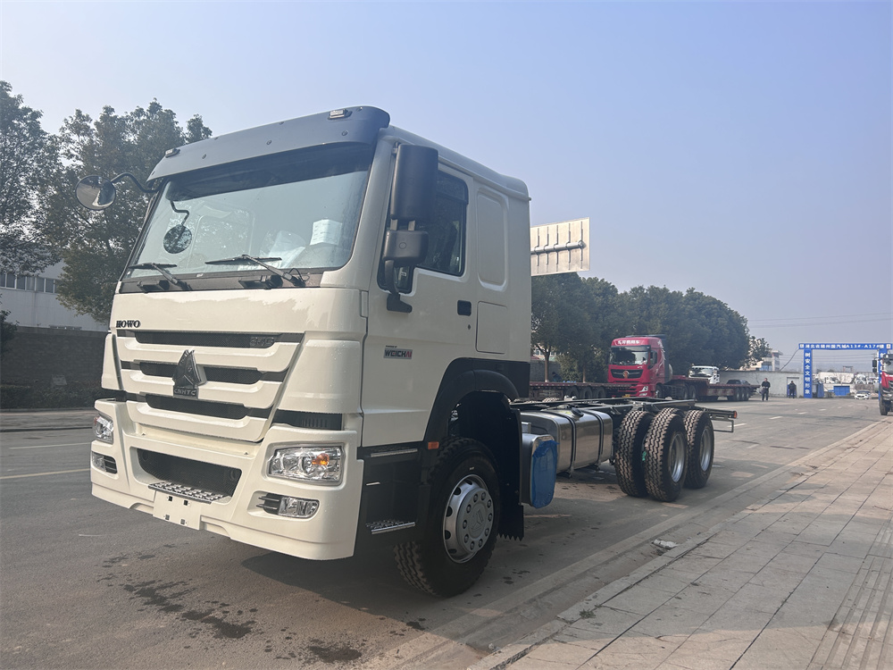 ZZ1257N4647B1R 出口HC16雙后橋(鼓),雙層車架(8+8/300),前后加強(qiáng)版多片簧(10/12),HW19710變速箱+HW70法蘭式取力器,WP10.340E22發(fā)動(dòng)機(jī),HW76新前臉駕駛室,12.00R20輪胎(混合花紋/18PR),不帶ABS,速比5.73,高位保險(xiǎn)杠(全金屬),右置方向機(jī),VGD95前軸(鼓)