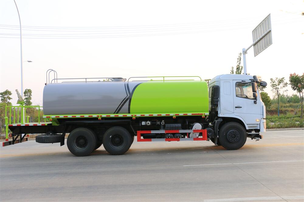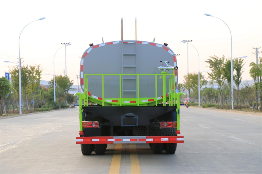 灑水車前裝有鴨形噴嘴或圓頭沖嘴,后面裝有圓柱開灑水噴嘴或蓮蓬頭噴嘴,后部有一工作平臺,裝配有水炮。后部還可裝8個噴嘴(選裝)。